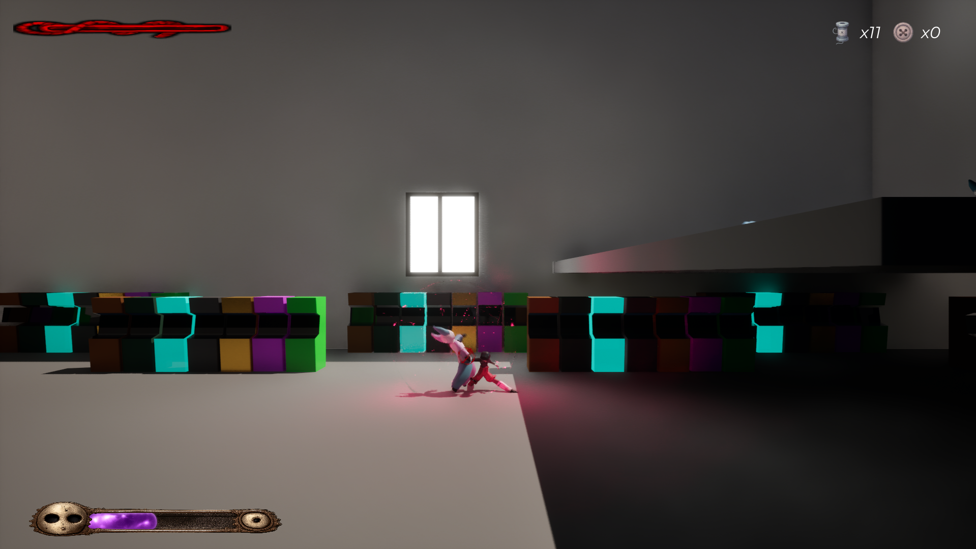 When the player attacks, a shadow emerges from the ground as a dark mass, forms into the player’s shape, performs a single delayed slash, and then collapses back into the floor. As the player’s insanity increases, the shadow becomes unstable spawning behind the player and capable of damaging both enemies and the player.
